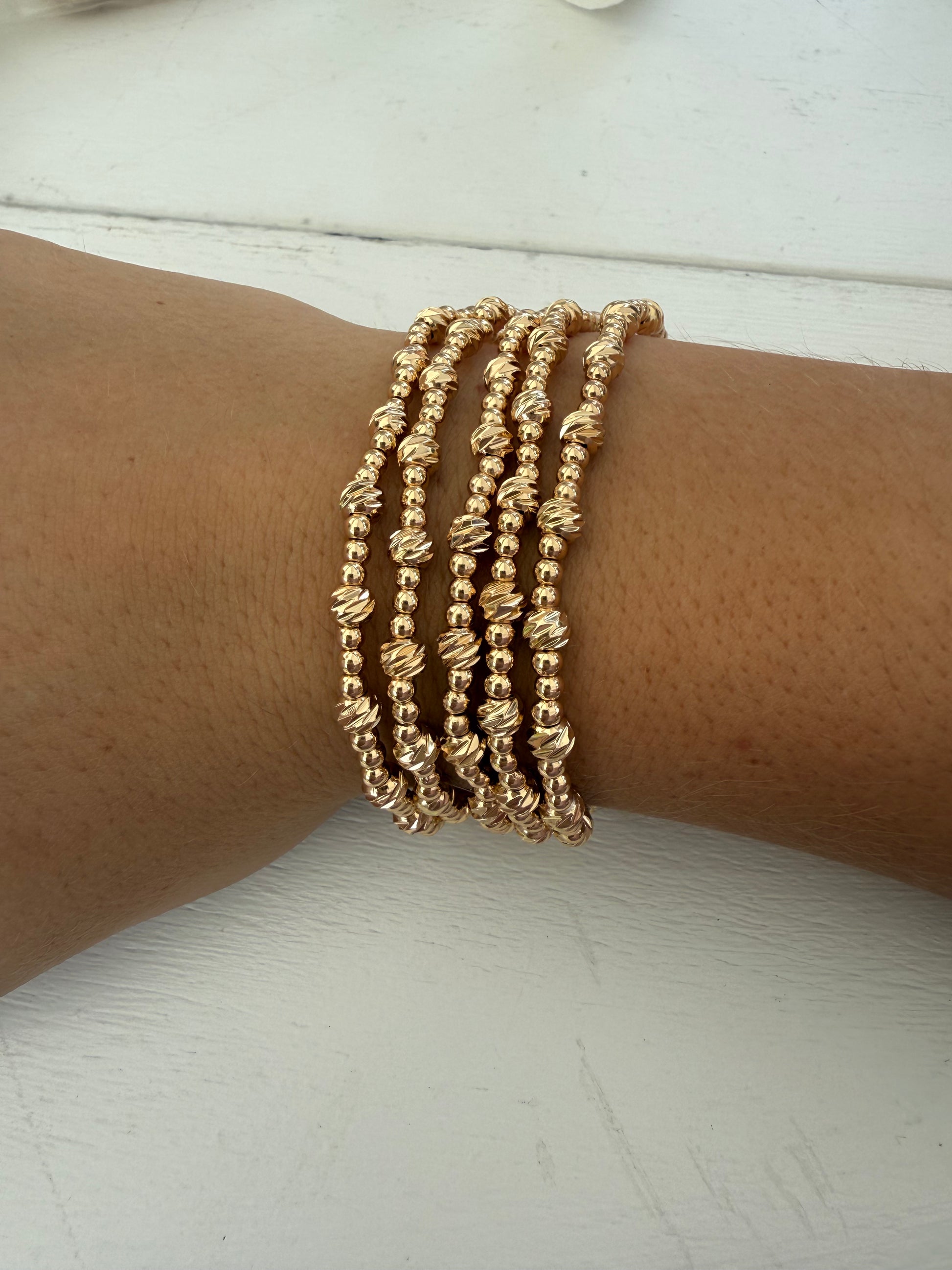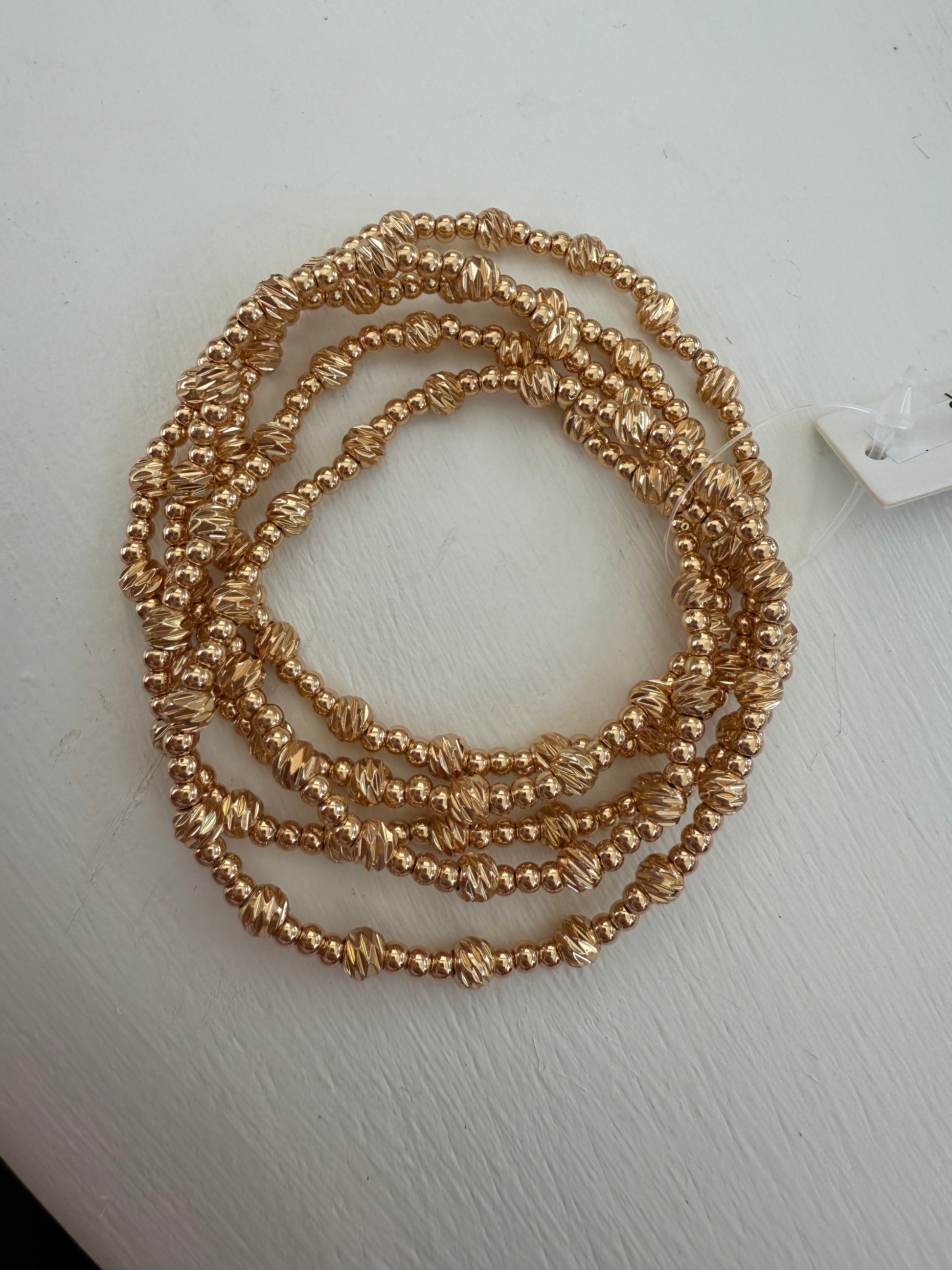 3mm Beaded Set of 5 Gold Stretch Bracelets