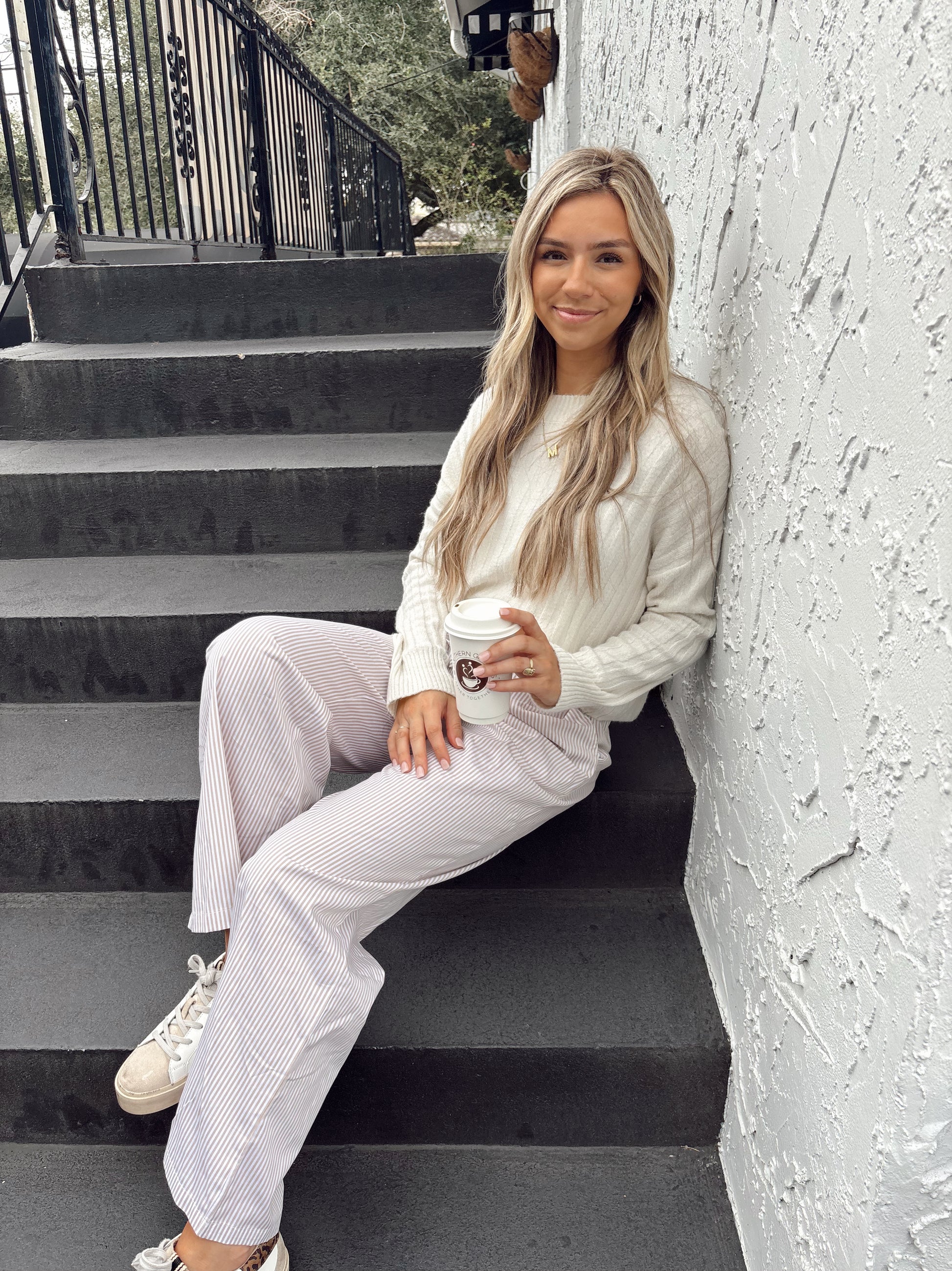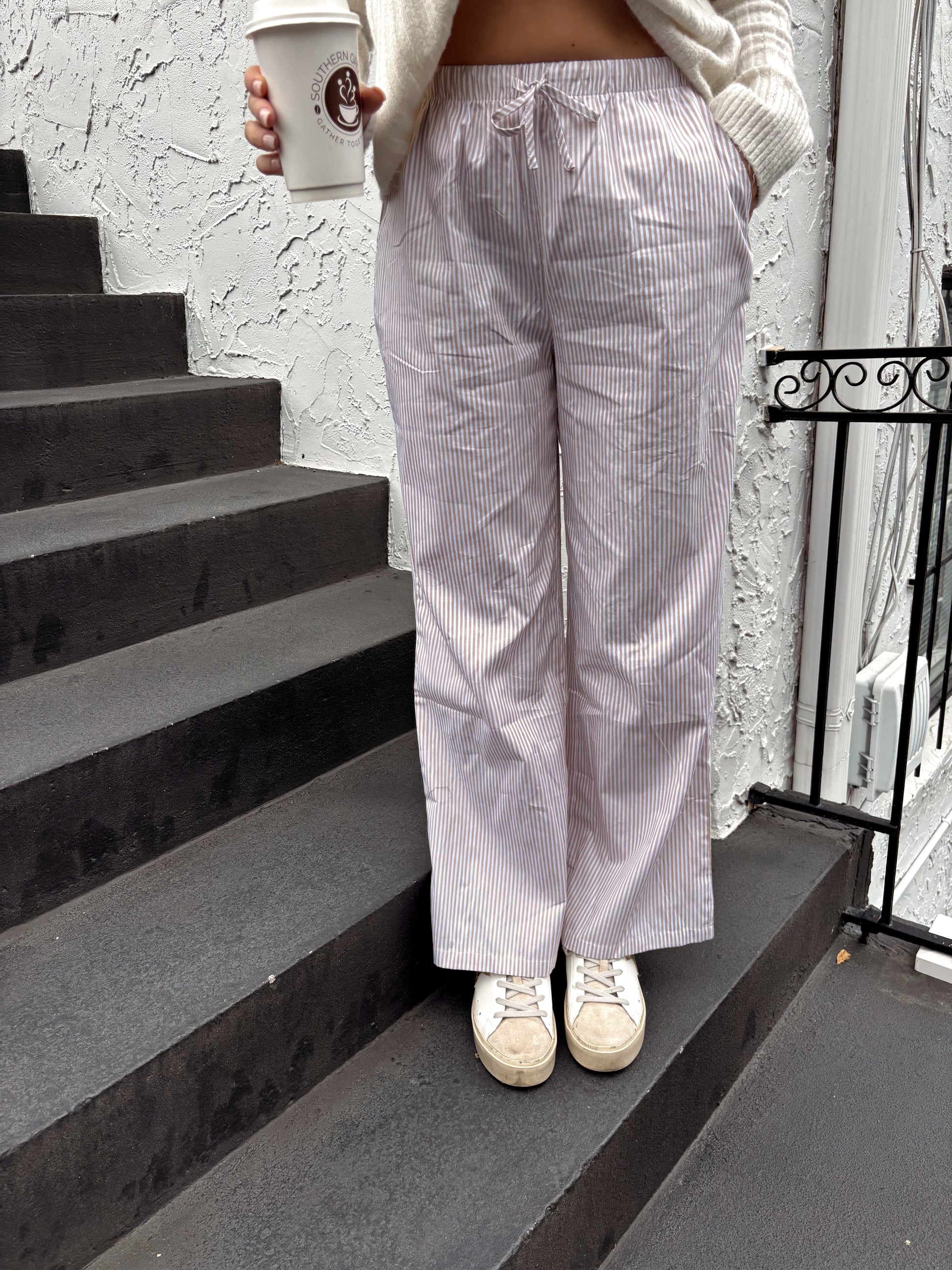 Beige Striped Pants