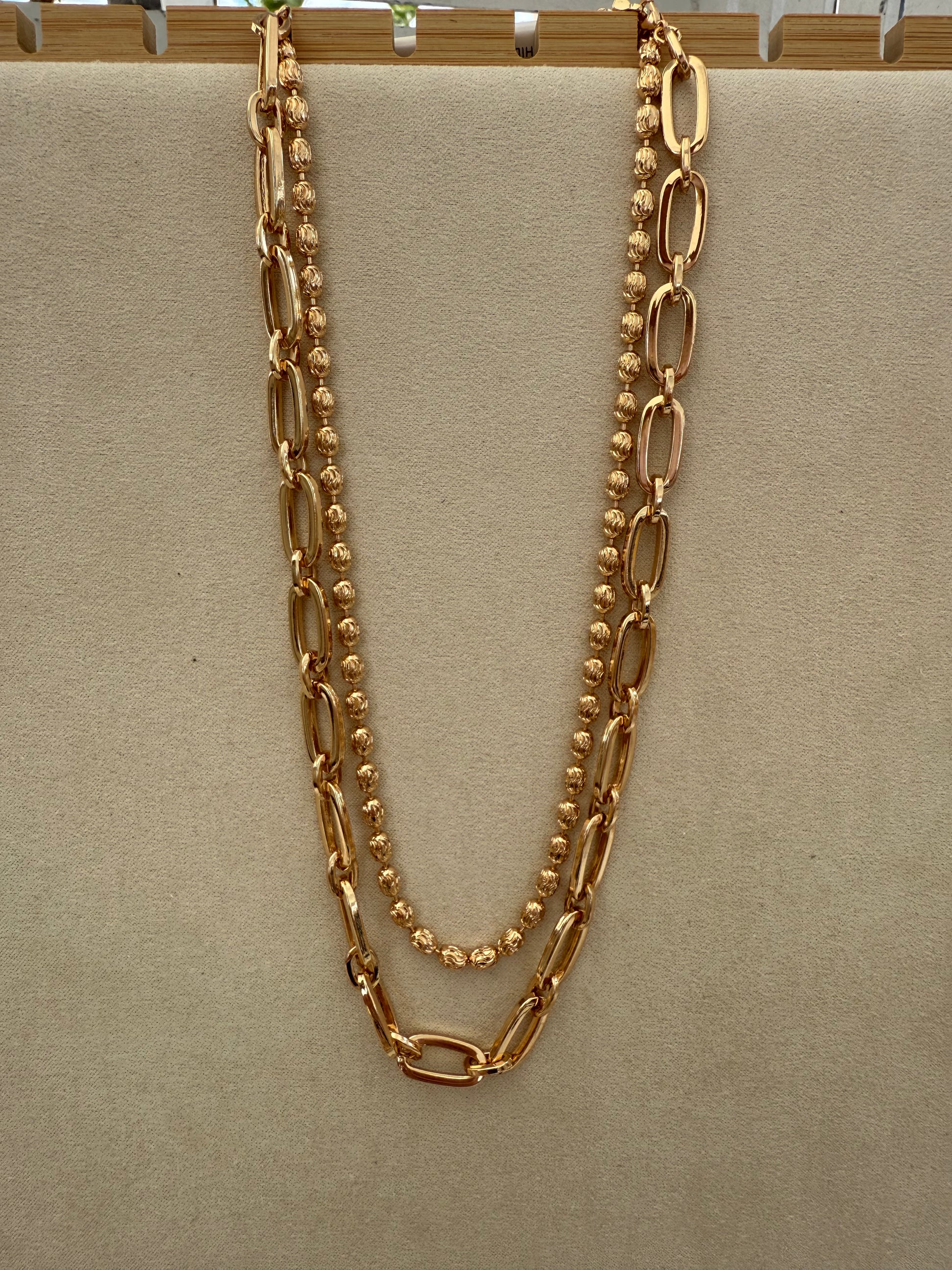 Water Resistant Gold Double Layered Oval and Flat Chain 16"-18" Necklace