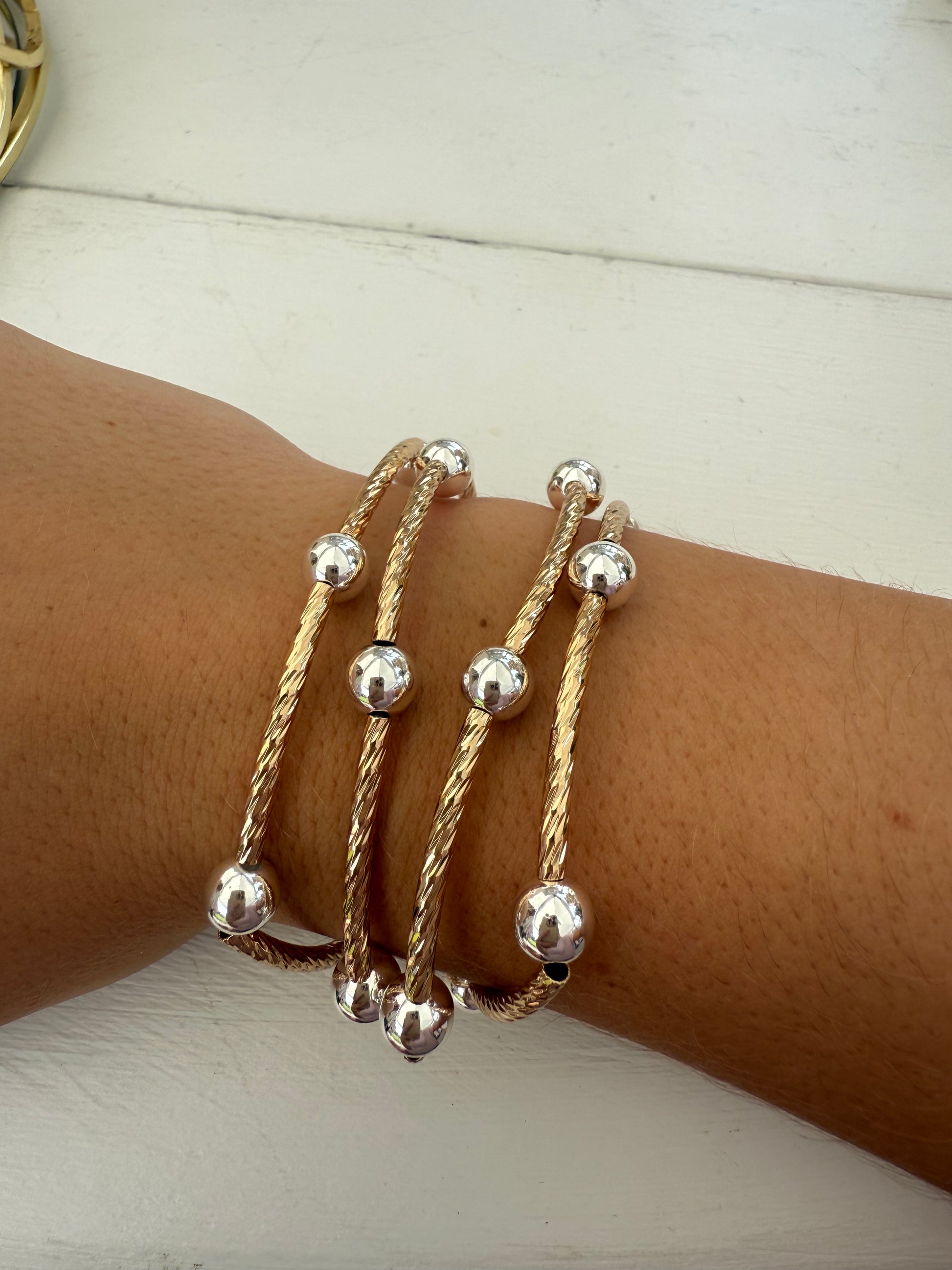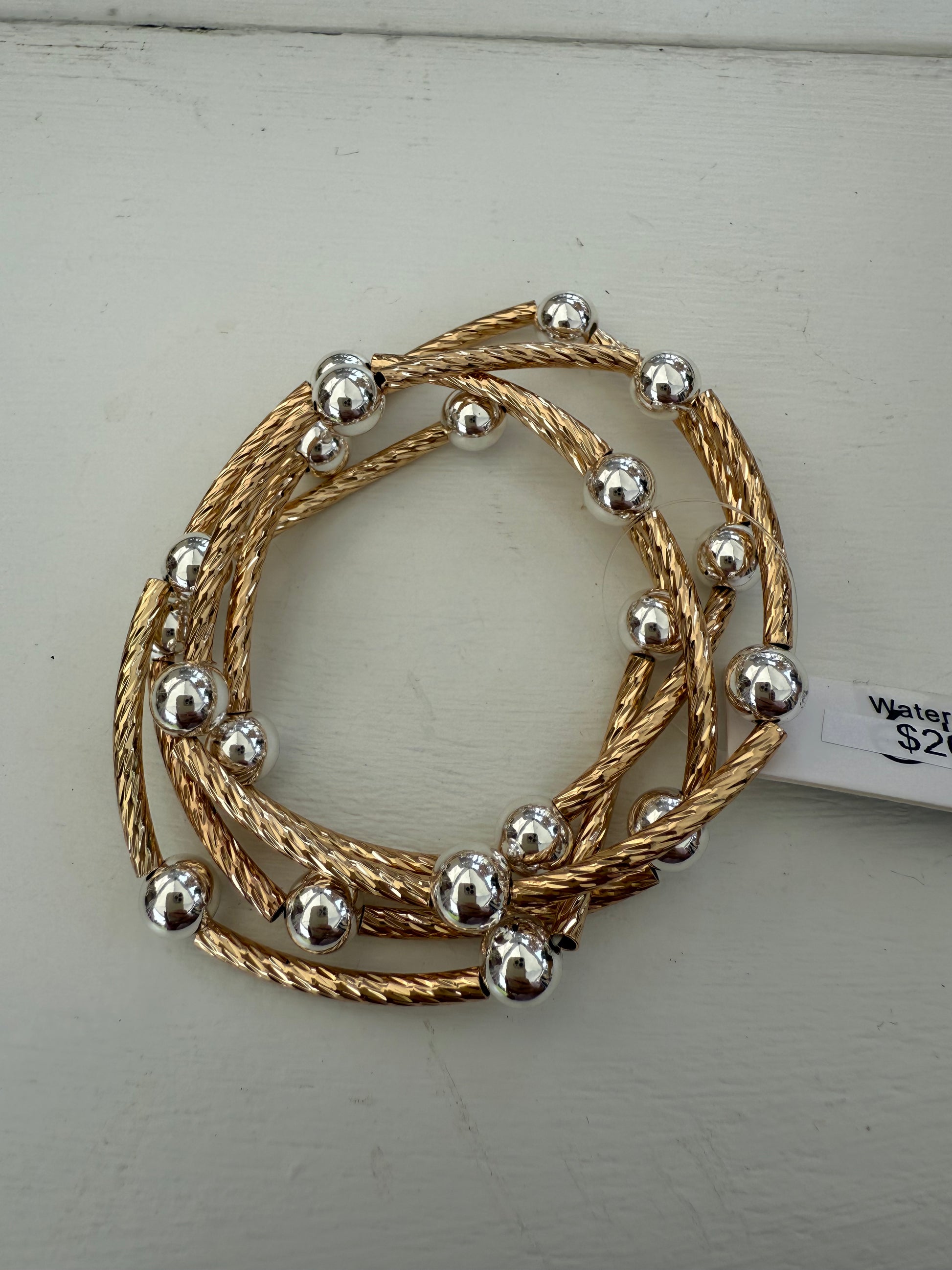 Water Resistant Set of 4 Gold Piping and Stretch Bracelets