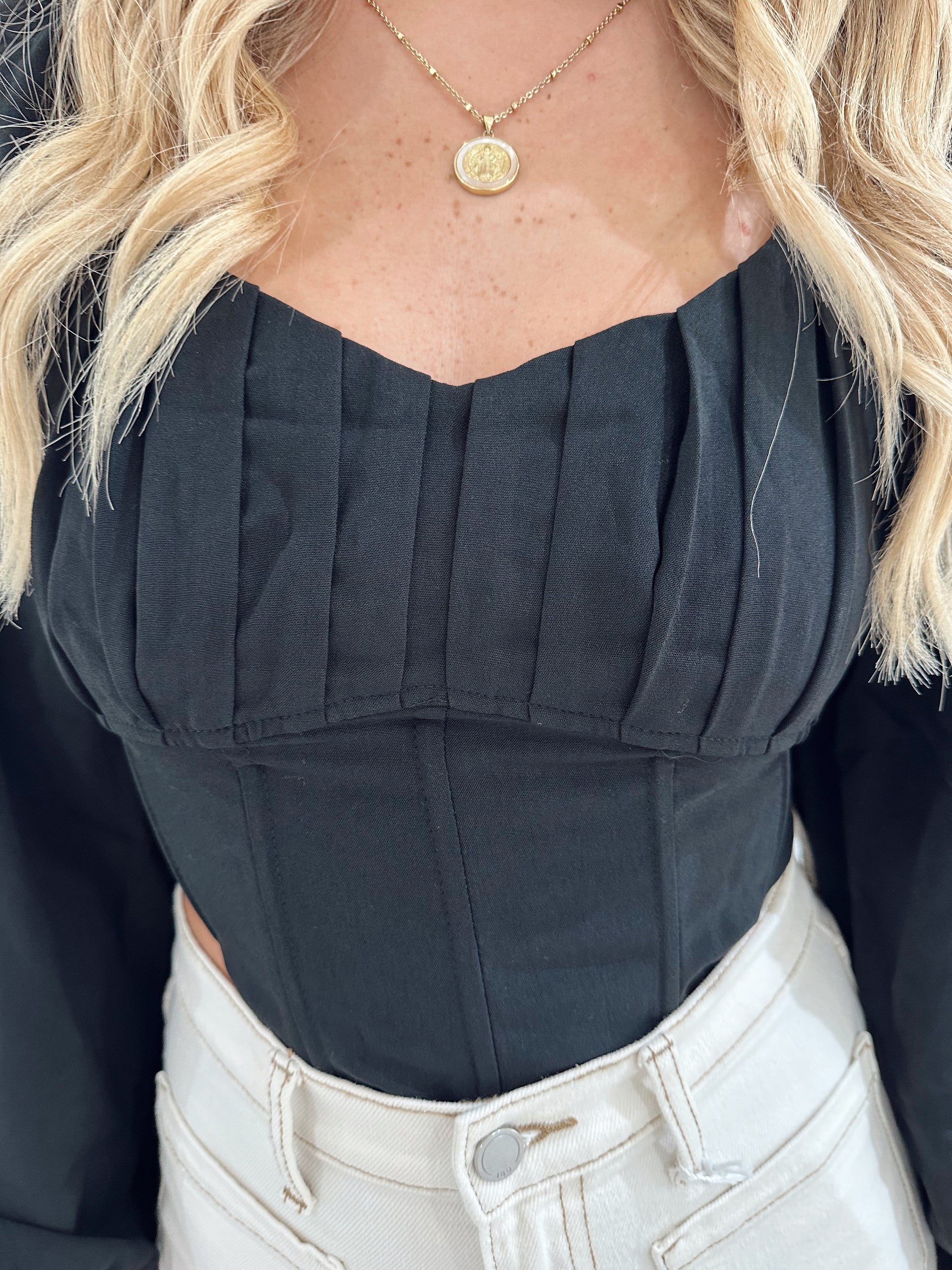 Black Long Sleeve Corset Top