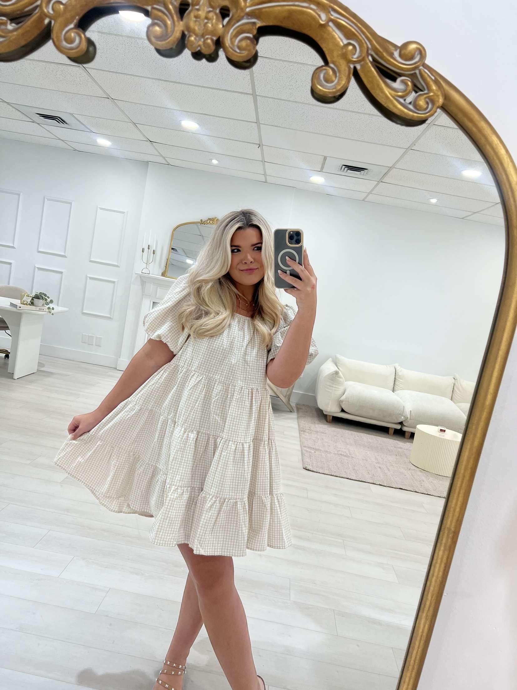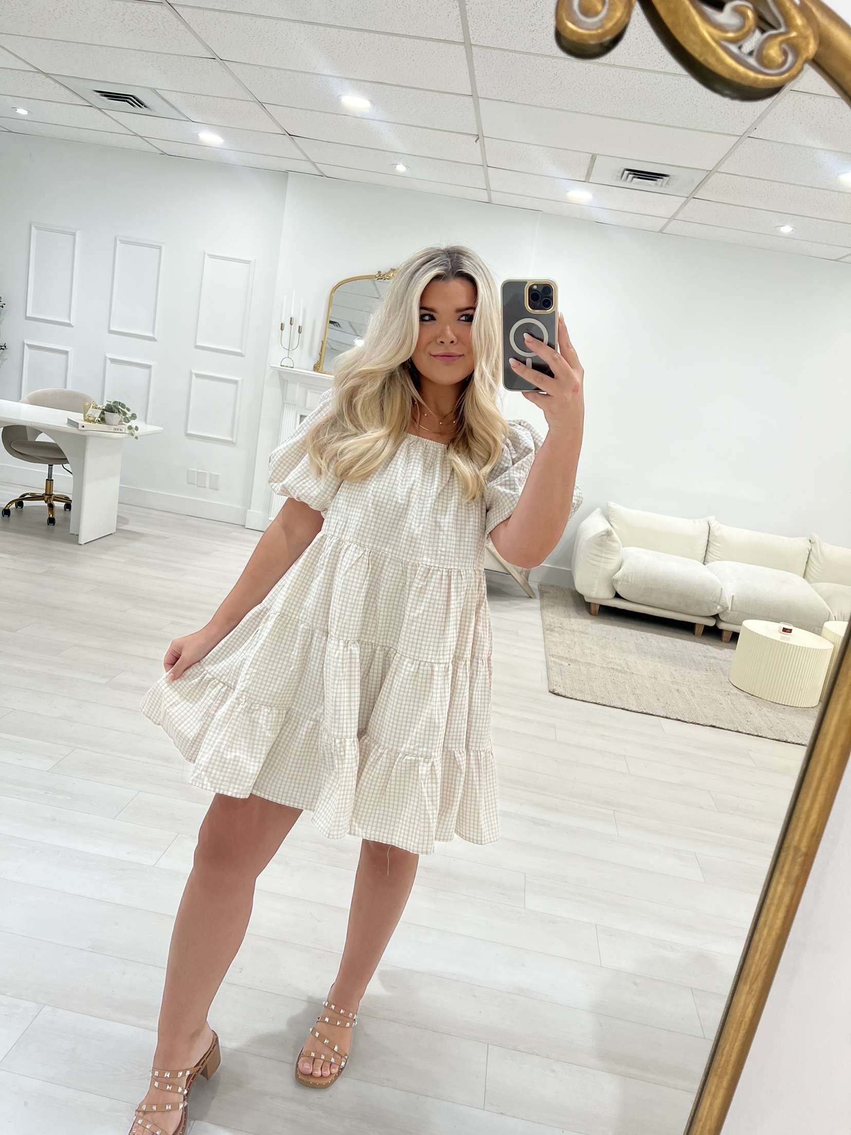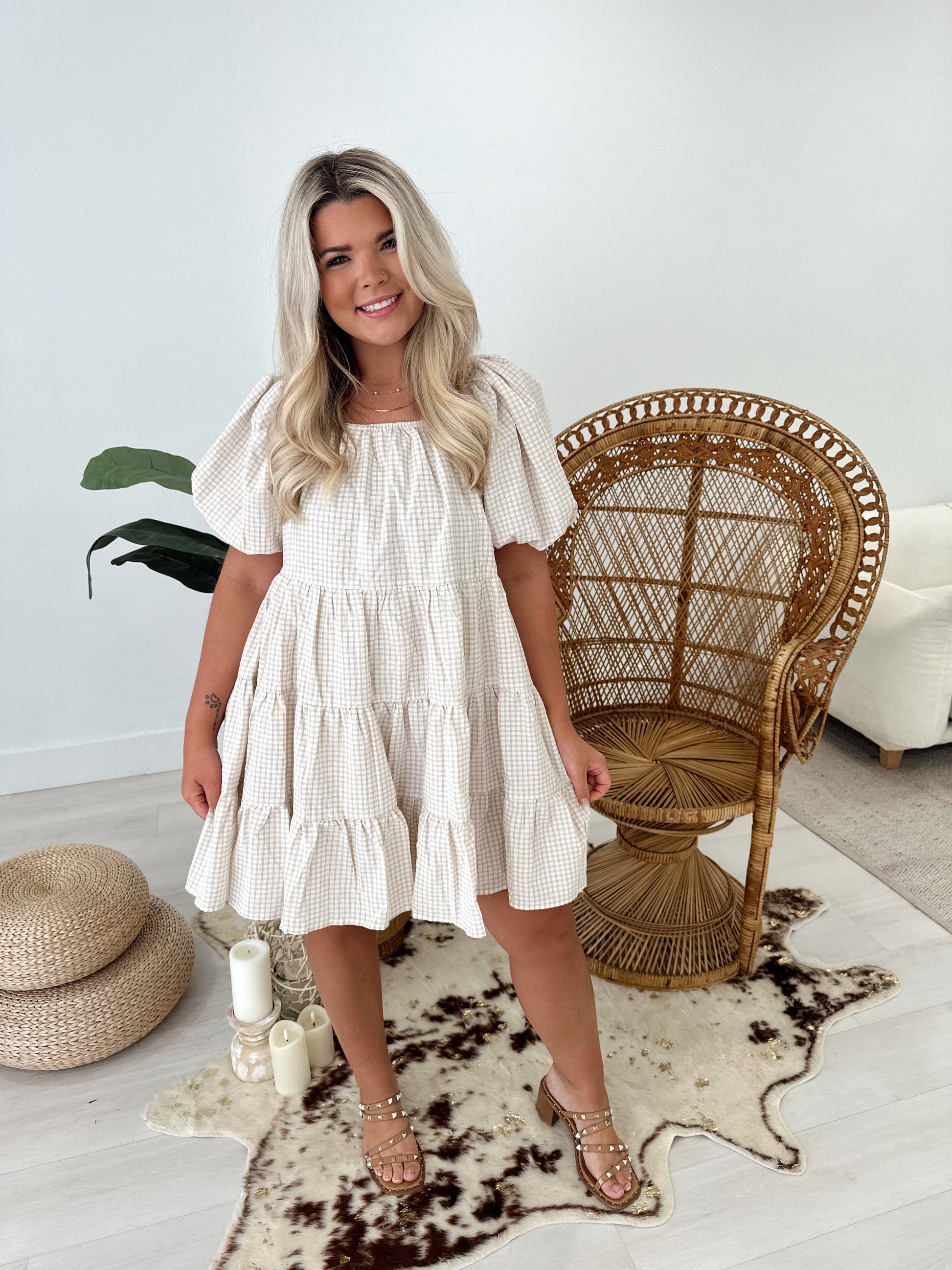 Plaid Puff Sleeve Tiered Mini Dress