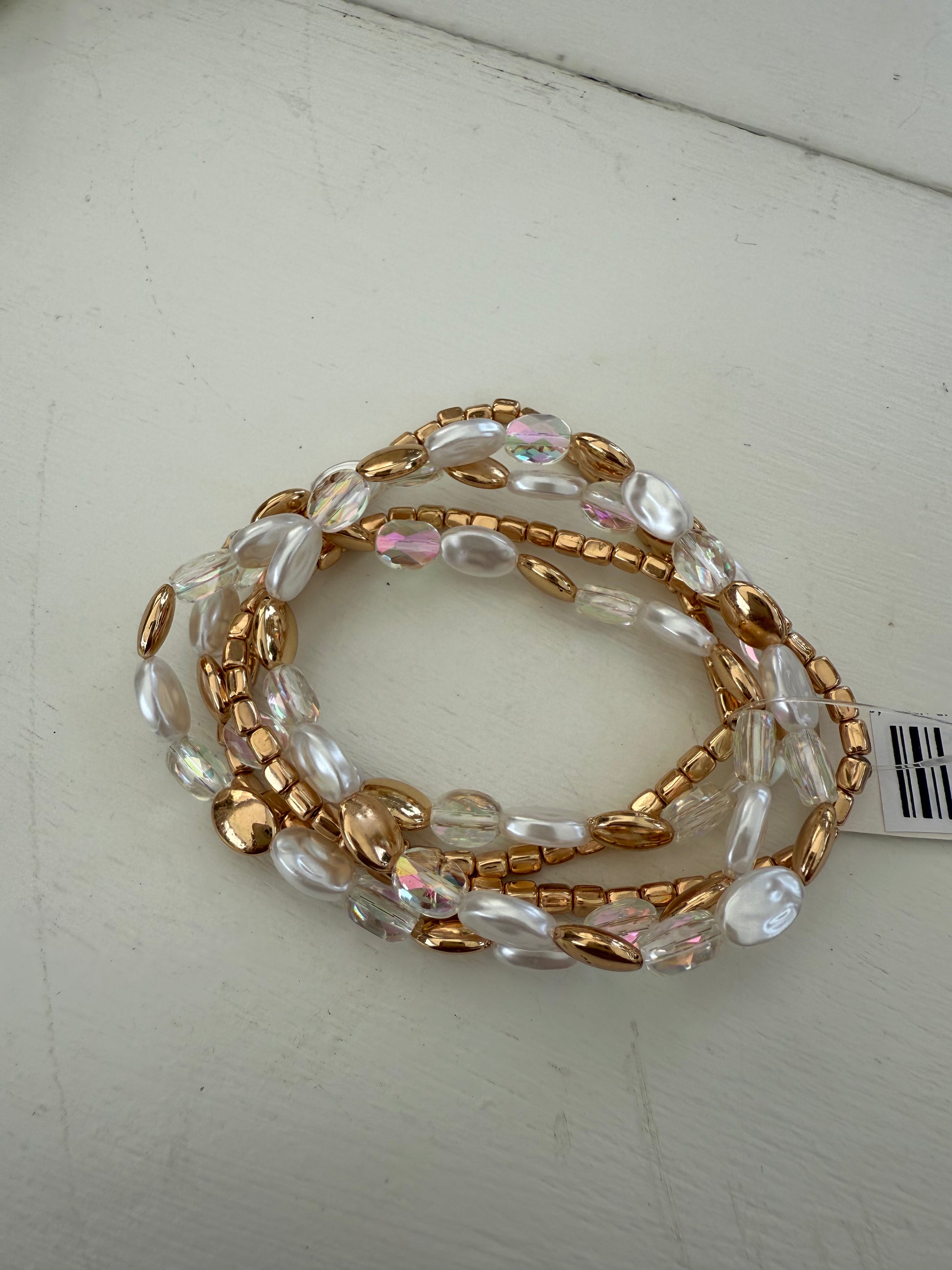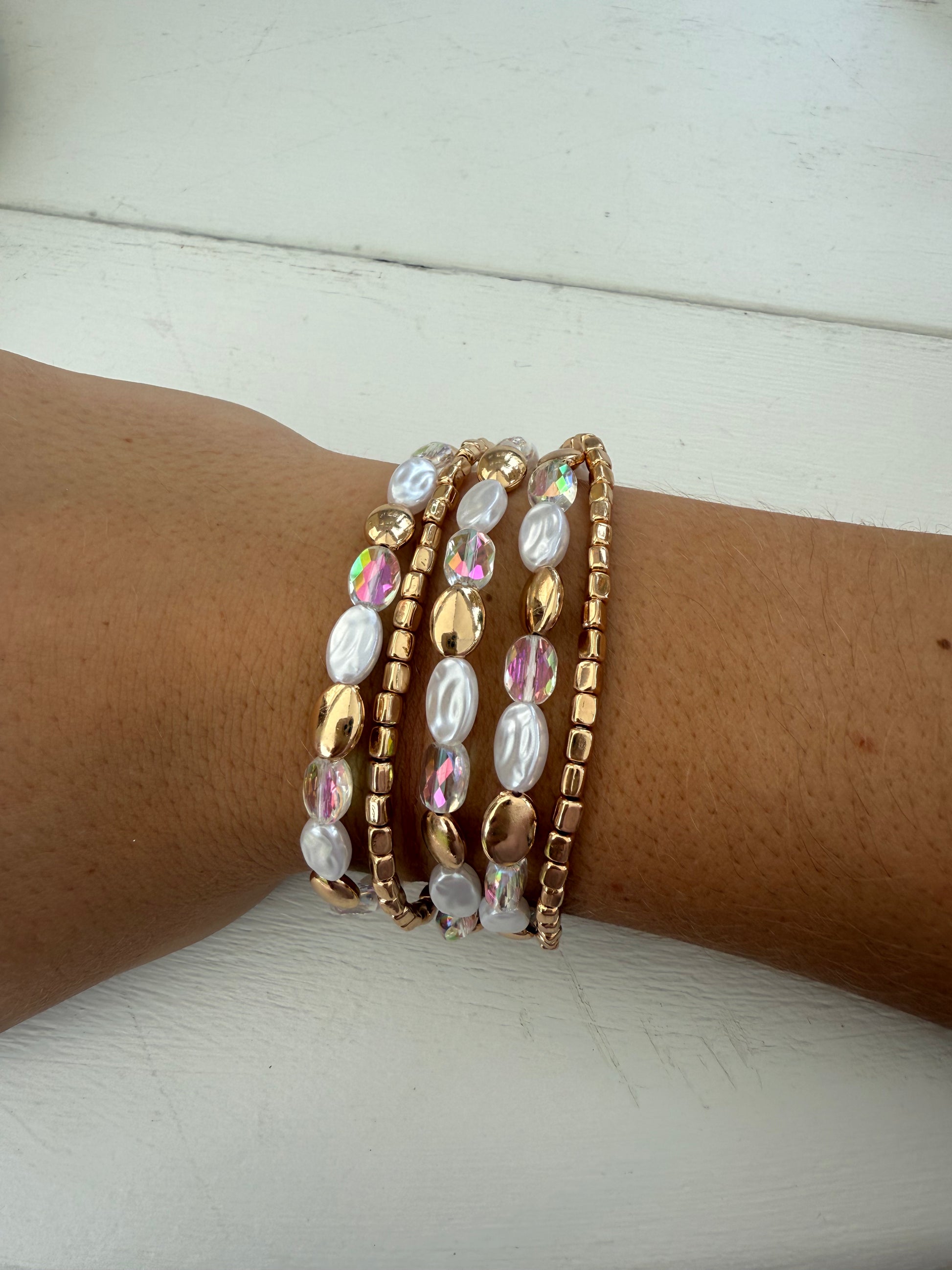 White, Pearl & Gold Beaded Bracelet Set of 5